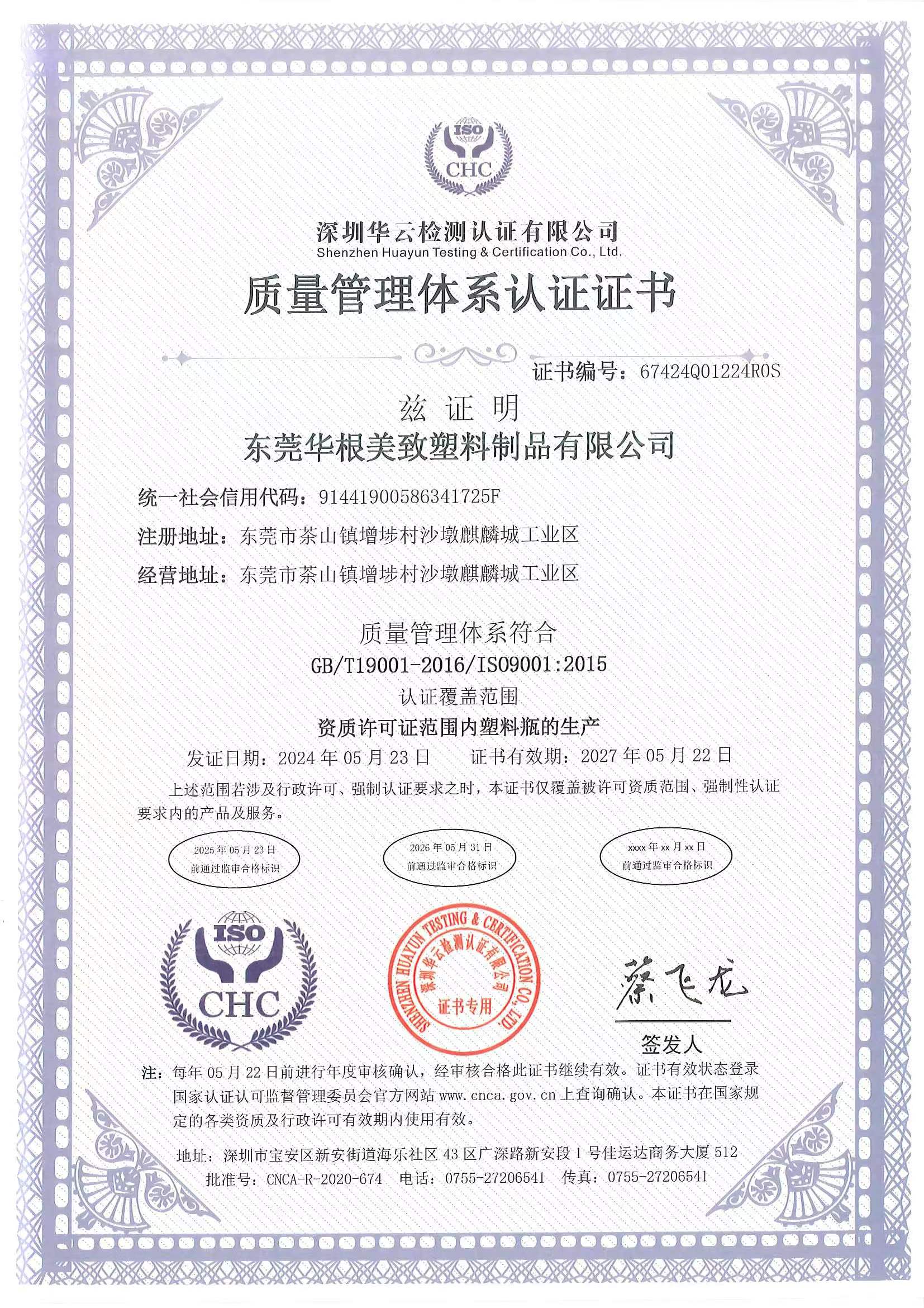 東莞華根美致塑料制品有限公司創建于2011年9月,前身是始建于是1997年東莞市沐陽塑料制品有限公司。公司位于廣東省東莞市茶山鎮增步村沙墩麒麟城工業區。是一家專業生產各種容量的PC飲用水桶、戶外及車載儲水器、高端食品級容器和異型特殊用途塑料系列制品。公司以“立根中華、塑造美致”為發展宗旨,不斷創新、苛刻品質要求,服務于全球不同國家及地區,為使用者提供更優質、更安全、更時尚的塑料制品。公司擁有10萬級無塵車間和先進的生產設備以及一批技術成熟、工藝精湛并富有創新意識、朝氣蓬勃的設計及生產管理團隊。目前的產品主要有:細胞培養瓶、運動水壺、各容量PC標準飲用水桶及手提式PC水桶、戶外車載儲水器及異型特殊用途吹塑產品系列等。